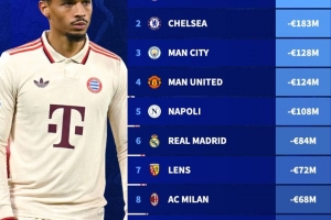 4、曼联,-1.24亿欧元
